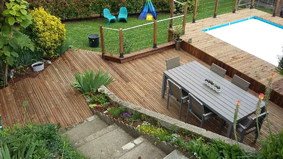 Nos terrasses étant disponibles en plusieurs essences de bois selon vos goûts, nous vous donnons également le choix de la forme et de la disposition des lames. Vous craignez de devoir entretenir votre terrasse bois ? Rassurez-vous, vous pouvez opter pour des bois offrant une grande résistance à l’eau et au soleil, sans entretien particulier.