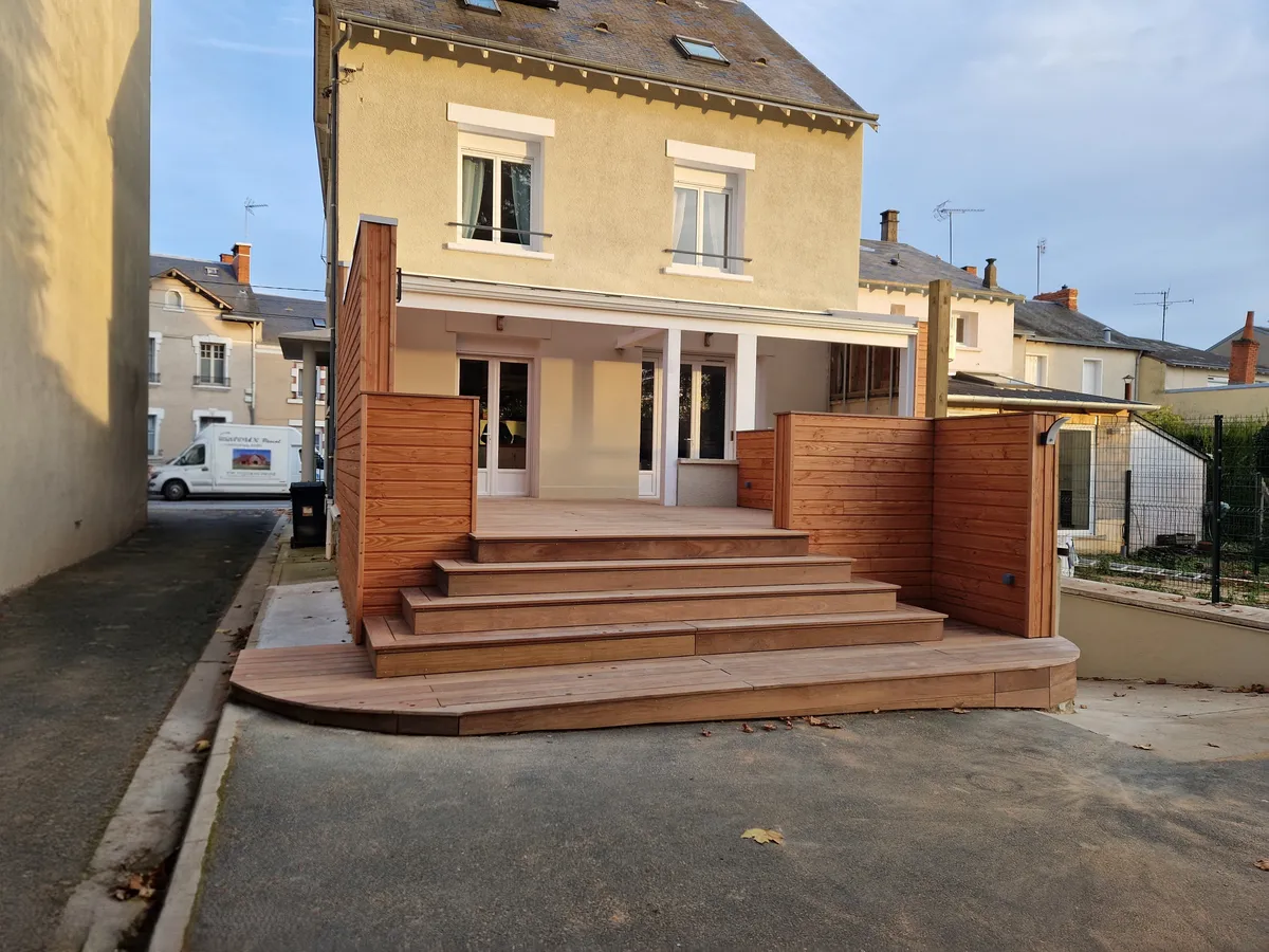 Parfaitement adapté à tous les types de terrasse, le bois donne un aspect naturel et chaleureux à votre extérieur. Pour une maison à ossature bois, la pose d’une terrasse en assure la continuité tout naturellement et vous permet de profiter au maximum de votre extérieur à Châteauroux. Vous pouvez, bien sûr, opter pour une terrasse en bois quelle que soit votre construction afin de l’entourer ou tout simplement de créer un espace extérieur sur lequel vous pouvez vous installer en famille ou entre amis.