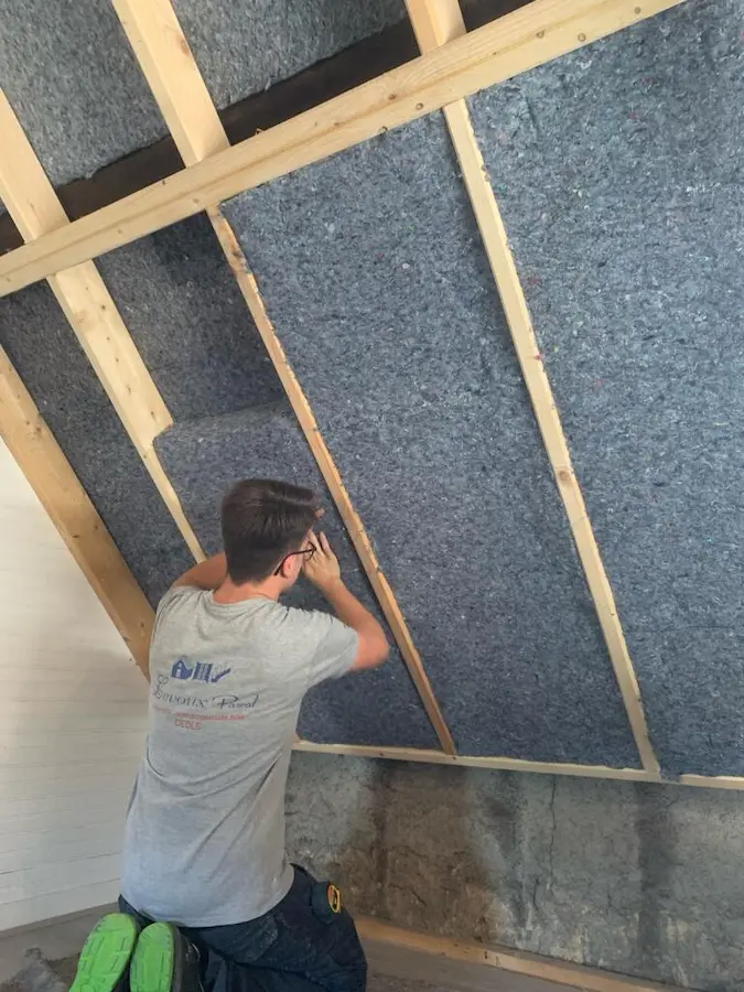 Nous utilisons exclusivement des isolants naturels et écologiques comme la fibre de bois, la fibre de coton et la ouate de cellulose (en panneaux ou en vrac par soufflage ou insufflation) pour l’isolation intérieure, car ces matériaux conservent leurs propriétés isolantes dans le temps, contrairement aux laines minérales qui se tassent.